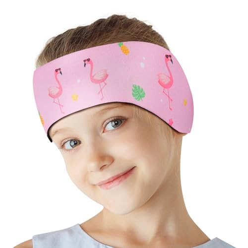 HeySplash Bande de Natation Étanche pour les Enfants, Bande de Sport Nautique, Bandeau de Natation Imperméable de Haute Élasticité, Bandeau Cheveux en Néoprène pour le Surf, M, Flamant Rose