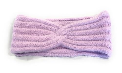 Bandeau d'hiver chaud en tricot avec nœud pour femme et fille - Cache-oreilles - Violet pastel - Lilas
