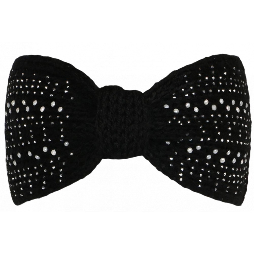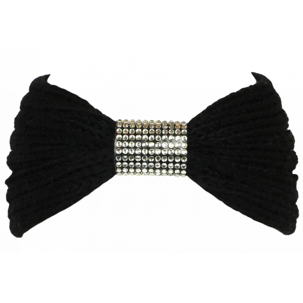 Bandeau Strass Femme Noir en Laine Noeud Classe Headband Hiver Merry-Taille uni