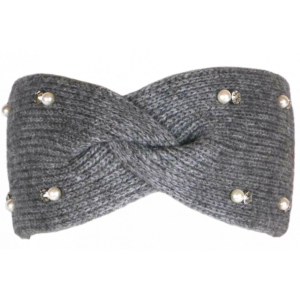 Bandeau en laine grise pour femme avec perles et cristaux Headband Hiver Merry-