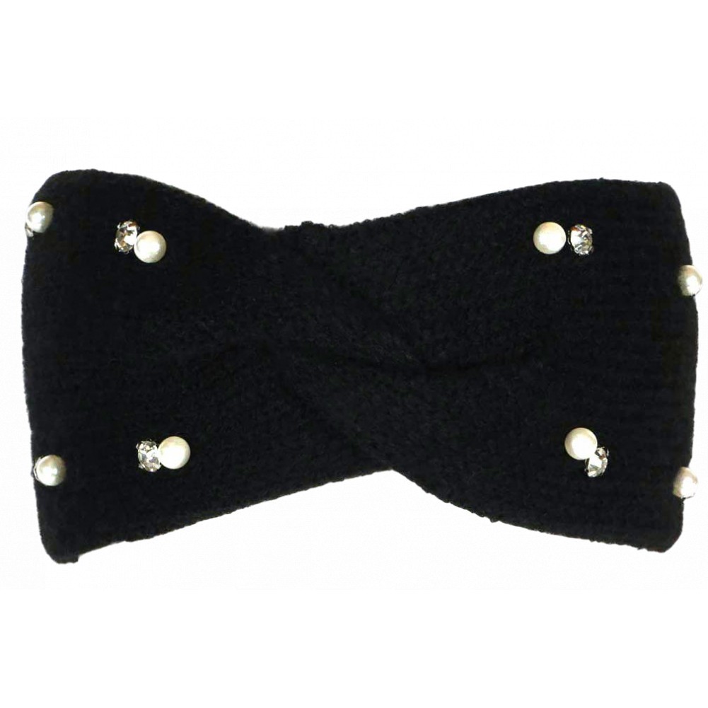 Bandeau en laine noire pour femme avec perles et cristaux Headband Hiver Merry-