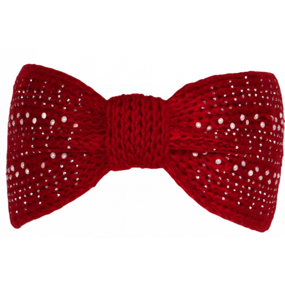 Bandeau Strass Femme Rouge en Laine Noeud Classe Headband Hiver Merry-Taille un