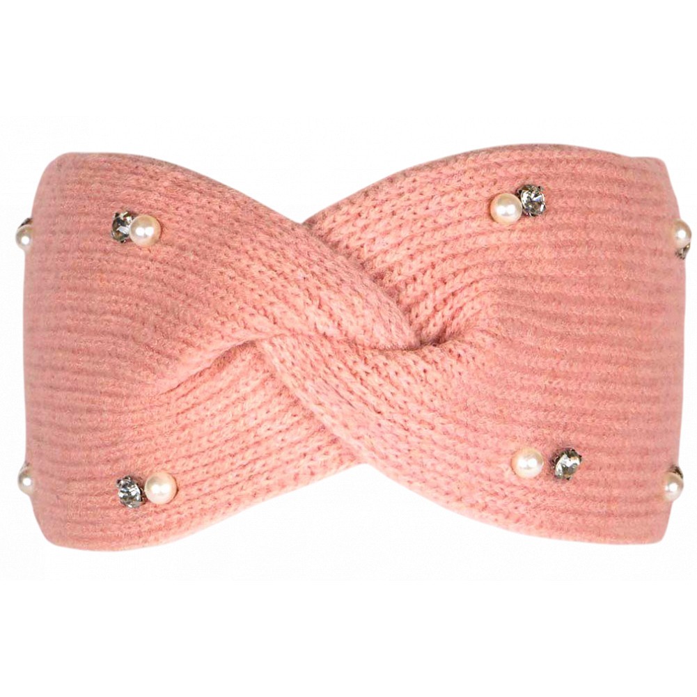 Bandeau en Laine Rose Femme avec Perles et Cristaux Headband Hiver Merry-Taille