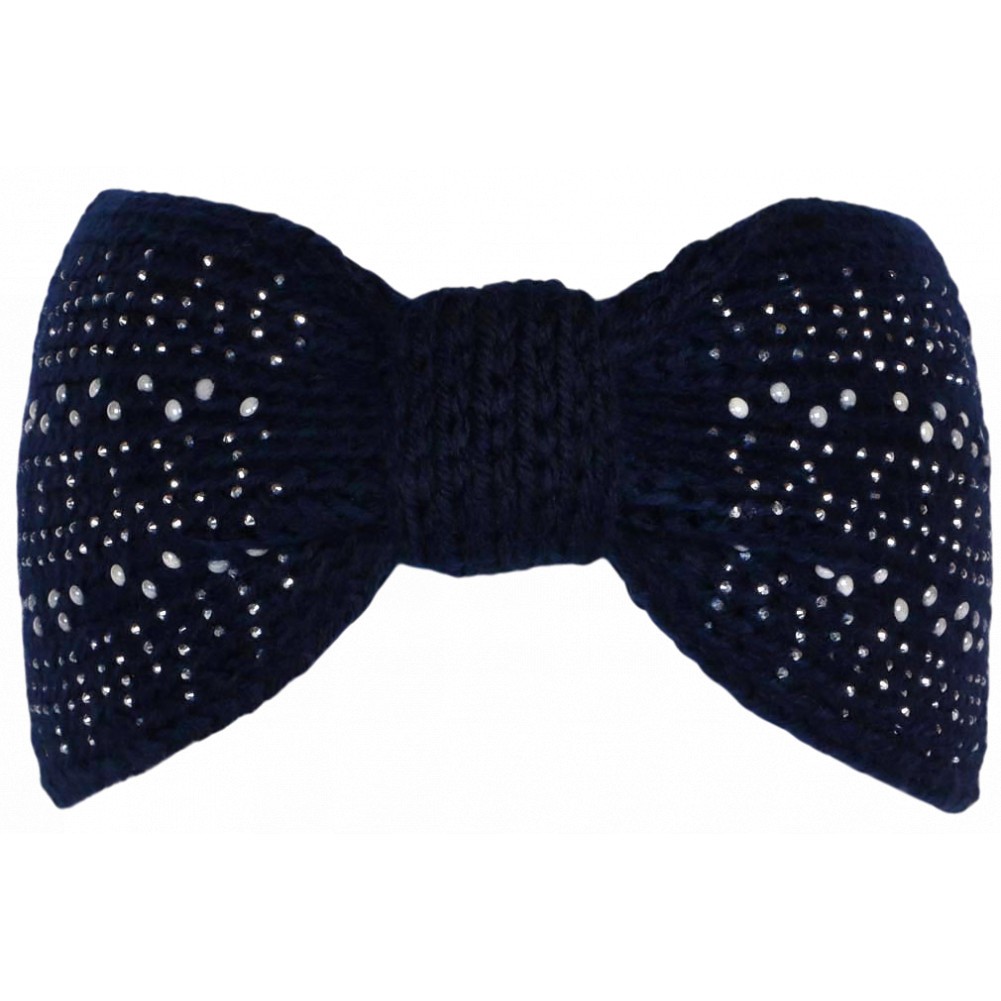 Bandeau Strass Femme Bleu Laine Noeud Classe Headband Hiver Merry-Taille unique