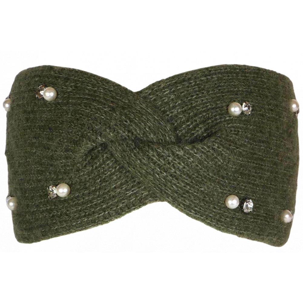 Bandeau en Laine Verte Femme avec Perles et Cristaux Headband Hiver Merry-Taill