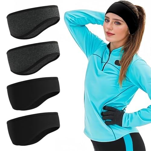 Flintronic Polaire Bandeau de Sport, 4 Pièces Hiver Sport Bandeau Cache Oreille, Femmes Hommes Thermique Extensible Cache-Oreilles, pour Sports, Yoga, Danse, Running, Ski, Cyclisme