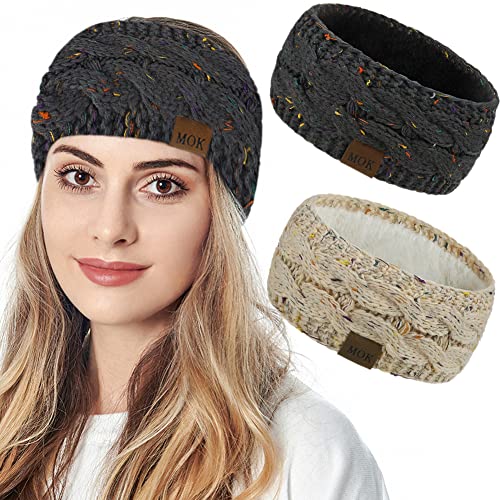 JFAN Bandeau Cheveux Femme Hiver Bandeau Oreille Tricoté Cache-Oreilles doux et Pelucheux 2 Pièces Gris+Beige