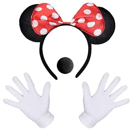 iZoeL Minnie Oreilles 1 X Souris Oreille Bandeau 2 X Gants Blancs 1 X Nez Noir Carnaval Accessoire Personnage de Dessin Animé Cosplay Party Déco Adulte Enfant