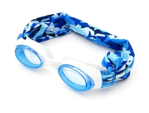 Lunette piscine WATERPLOPS - Lunette natation bandeau piscine oreille enfant, ne tire pas les cheveux [ Lunettes piscine enfants & adultes ] (Requins, Enfant)