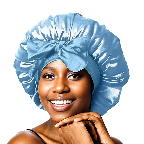 Wmm763 Bonnet en soie pour dormir – Bonnet en satin de soie double couche pour homme et femme avec bandeau élastique à nouer – Noir, 1 pièce., taille unique