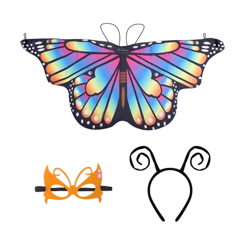 UOPJDD Cape À Ailes Papillons 1 Pièce, Masque Facial 1 Morceau Et Bandeau 1 Pièce, Accessoires De Rôle, Fournitures De Maquillage, Fournitures De Pansement pour Enfants.