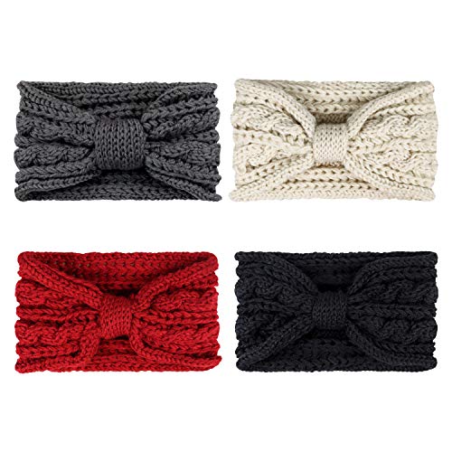 DRESHOW 4 Pièces Bandeau Cheveux pour Femme Bandeaux Hiver Serre-Tête Tricoté Oreille Réchauffeur Chaud Noué Bande Elastique Cheveux