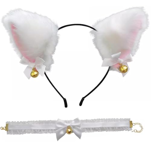 Zwenjuan Serre Tete Oreille De Chat,Oreille de Chat Serre Bandeau Oreilles de Chat Bandeau Accessoires de Cosplay de Chat avec Cloches,Accessoires de Robe pour Filles Femmes,Cosplay de Fête(Blanc)