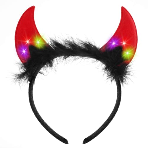 Alaoo Bandeau Diable,Serre Tete Corne de Diable Avec Plumes,Oreille Diable,cornes de diable lumineuses,pour Accessoires D'oreilles Diable pour le Jeu de Rôle du Carnaval D'Halloween,Noir Rouge