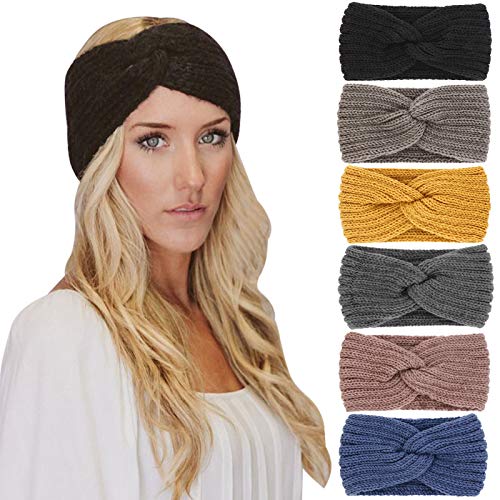 DRESHOW 6 Pièces Bandeau Cheveux pour Femme Bandeaux Hiver Serre-Tête Tricoté Oreille Réchauffeur Chaud Noué Bande Elastique Cheveux