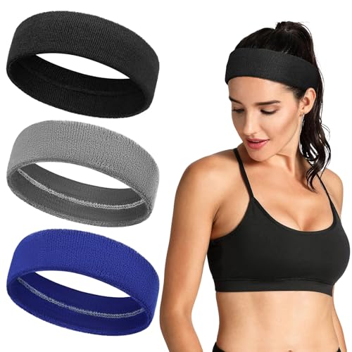 3 Pièces Bandeau Anti-Transpiration pour Homme et Femme, Bande de Cheveux Bandana de Sport Serre Tete pour Fitness, Running,Cycliste, Yoga, Basketball