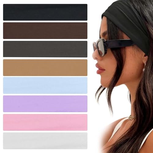 8 Pcs Bandeaux Mode pour Femmes, Bandeau Cheveux Femme Homme 6 cm, Antidérapant Headband Running Sport Yoga, Bandeau Cheveux Yoga pour Running, Exercice et Usage Quotidien