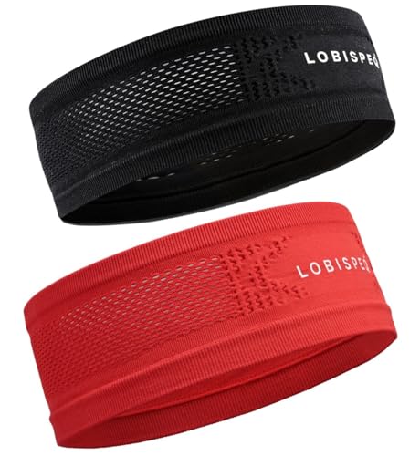 LOBISPEQ Lot de 2 bandeaux pour cheveux de sport respirants et confortables en nylon + Spandex Running Gym | Bandeau pour homme | Bandeau pour homme | Headband (noir et rouge)