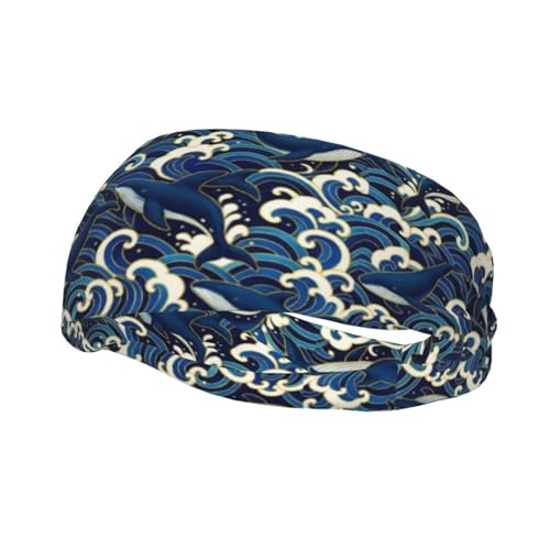 Thème des Vagues De Baleines Homme Femme Serre Tete Antidérapant Headband Absorbe La Transpiration Bandeau Cheveux pour Sport Yoga Randonnée Fitness