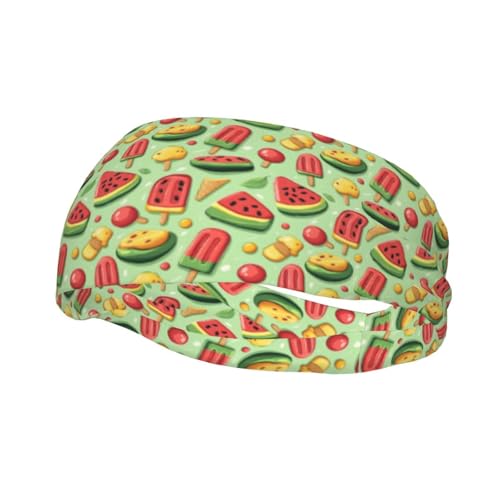 Impression De Glace À La Pastèque De Dessin Animé Homme Femme Bandeau De Sport Séchage Rapide Serre Tete Doux Headband pour Entraînement Basketball Jogging Football