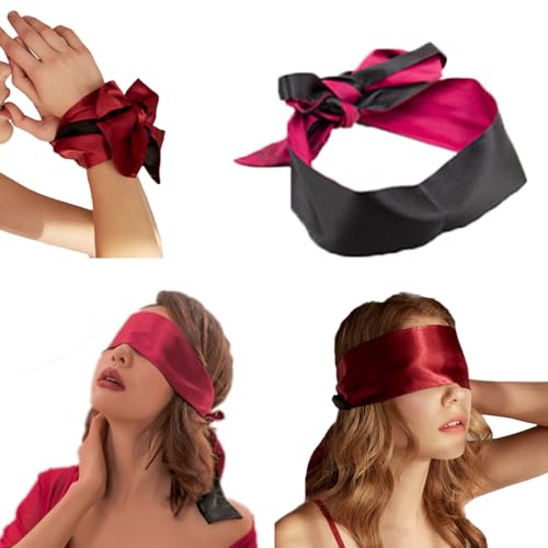 ZWCHGJ Cache-yeux en soie douce, bandeau pour les yeux, lisse, double face disponible, patch pour les yeux, ceinture à nouer en satin réglable avec cache-tétons en forme de cœur pour les couples, jeux