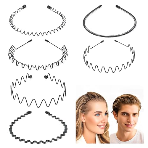 Elalove 6 Pcs Serre Tete Métallique Ondulé en Ressort pour Femmes et Hommes - Bandeaux Cheveux Résistants et Confortables pour Sport, Décontracté et Quotidien