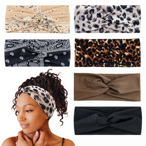 Youery 6 Pièces Bandeau Cheveux Femme, Boho Élastique Bandeaux Vintage Fleur Imprimé Hair Bandeau Léopard Yoga Sport Headband Serre Tete Femme Multicolore (Couleur 2, Paquet de 6)