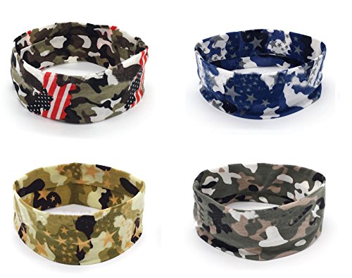 Apanphy® 4pcs Bandeaux de Yoga de Sport, Bandeaux de Camouflage de Coton Extensible, Hommes et Femmes exécutant des Bandeaux antitranspirant Bande de Cheveux Camouflage