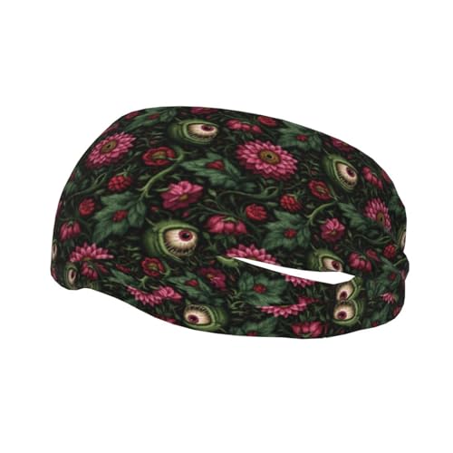 Bandeaux de transpiration pour homme et femme – Motif fleurs roses et yeux imprimés anti-humidité – Bandeau d'entraînement élastique pour femme pour la course à pied, le cyclisme, le yoga, le