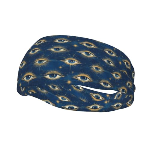 Bandeaux de transpiration pour homme et femme – Imprimé abstrait yeux dorés évacuant l'humidité – Bandeaux élastiques d'entraînement pour femme pour la course à pied, le yoga, le cyclisme, le