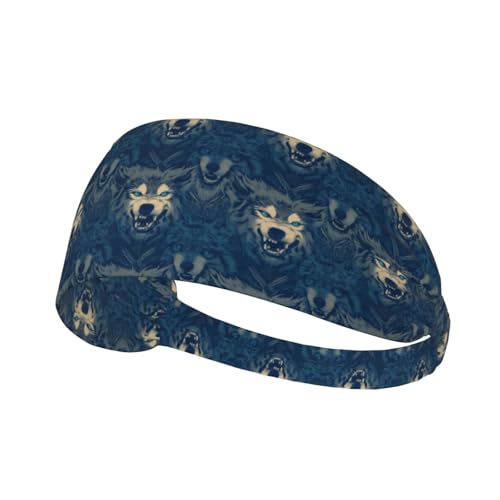 Bandeaux de transpiration pour homme et femme – Imprimé loup cool aux yeux bleus – Bandeaux de sport élastiques pour homme et femme pour la course à pied, le yoga, le cyclisme, le basket-ball