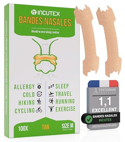Incutex 100 unités de patchs nasaux contre le ronflement bandelettes nasales anti-ronflement congestion nasale, taille M, 55x16 mm