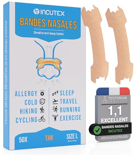 Incutex 50 unités de patchs nasaux contre le ronflement bandelettes nasales anti-ronflement congestion nasale, taille L
