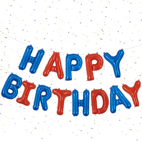 UDRKFOPK Happy Birthday Banner Bleu Rouge,16 Pouces Banderole Happy Birthday,Banderole Joyeux Anniversaire,Anniversaire Banderole pour garçons,Filles et Adultes, décorations d'anniversaire et de fête