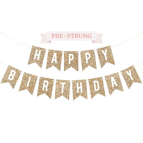 JeoPoom Joyeux Anniversaire Banderole, Happy Birthday Banner, Birthday Bannière Banderole, Guirlande Brillante et Dorée pour Fête d’Anniversaire, pour Filles Garçons Adultes(Or)