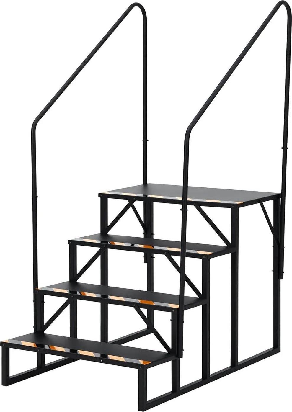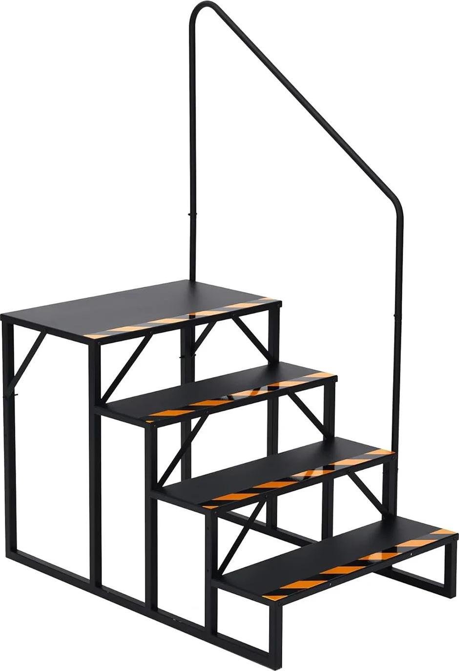 Escalier d'accès pour camping-car/caravane - 4 marches - Double main courante - Bandes antidérapantes - Acier au carbone - Portable - Bleu