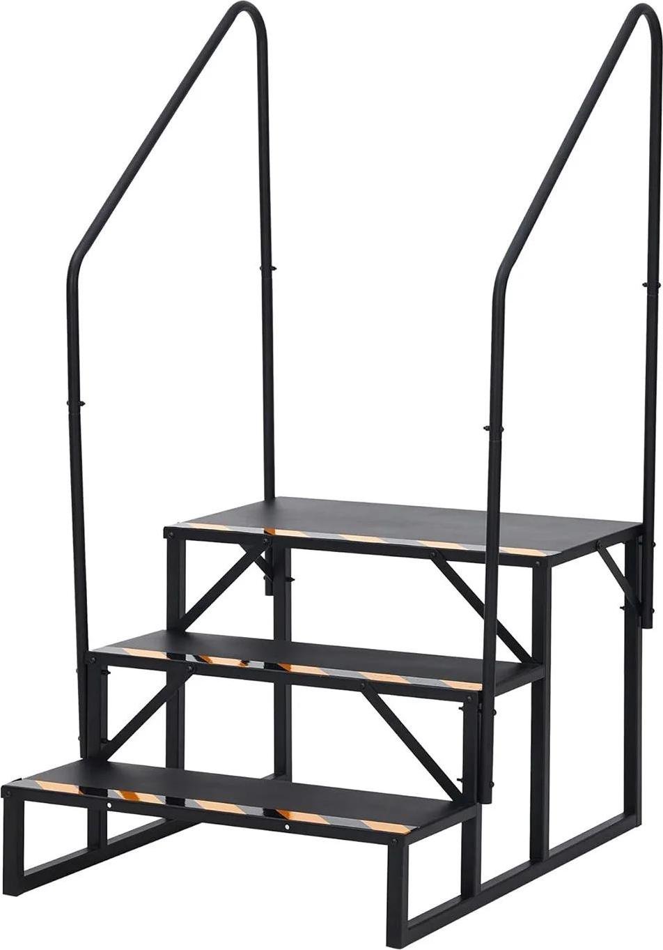 Escalier pour camping-car/caravane - 3 marches avec main courante - bandes antidérapantes - portable - acier au carbone - rouge