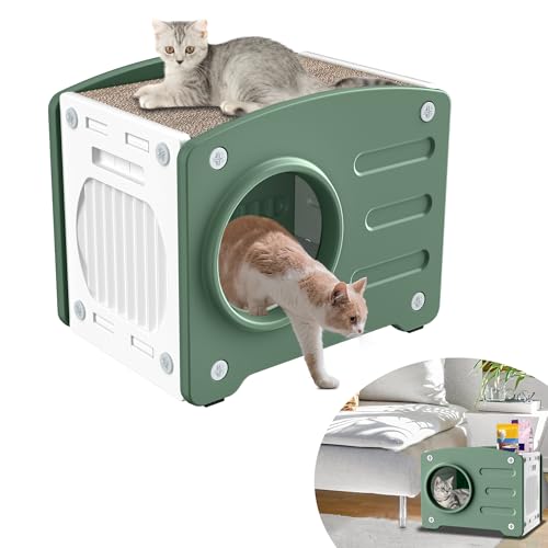 YRHome Niche pour chat avec griffoir en plastique - Aération optimale - Bandes antidérapantes et facile à nettoyer - Pour l'intérieur et l'extérieur - 55,3 x 40,5 x 46 cm