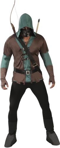 FIESTAS GUIRCA | Costume de Archer Adulte (46-48/S) - Capuche, Tunique, Ceinture, Couvre-bottes et Masque - Costumes Médiévaux, Bandits et Mousquetaires pour Halloween et Carnaval - Marron et Vert