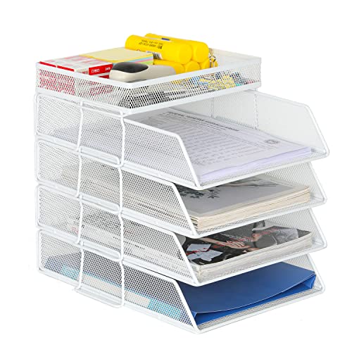 Exerz Corbeilles à courrier 4 Pièces/Bannette de Bureau superposable à Mailles métalliques/Organisateur Multifonctionnel/Support de fichier pour Le Bureau, l'école, l'étude - Blanc
