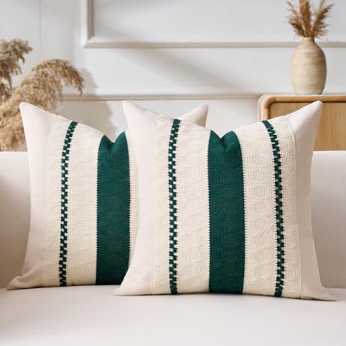 Aisybaklyn Housse de Coussin 40 x 40 Lot de 2 Vert Housse Coussin Canapé Moderne Coussins Décoratifs Boho Motif pour Chambre Ferme Style Rustique Banquette Canape Decoration