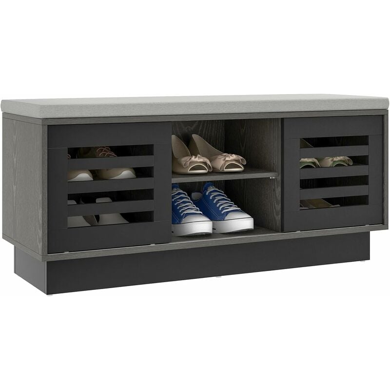 Costway - Meuble à Chaussure en Bois, Banc à Chaussures avec Siège Rembourré, 2 Portes Coulissantes, 6 Compartiments, Banquette de Rangement, Meuble