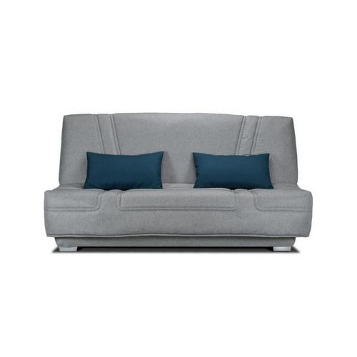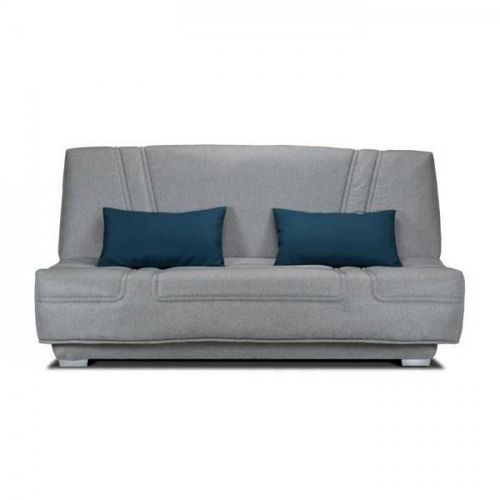 COMFORT BULTEX Banquette clic-clac - 3 places - Tissu gris + Coussins deco bleu - L193 x