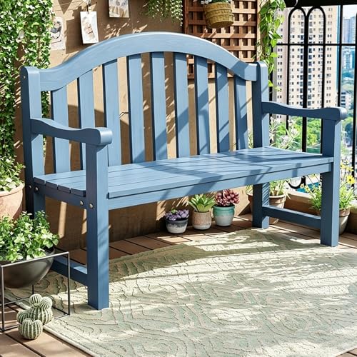 YYBHKHBY Banc Jardin Bois Brun,Banquette Style Rustique pour 2/3 Personnes,Banc Bois Massif d'une Capacité Charge 500 Kg,Banquette D'extérieur Bois Dur pour Balcons Jardins,Bleu,120x45x80cm