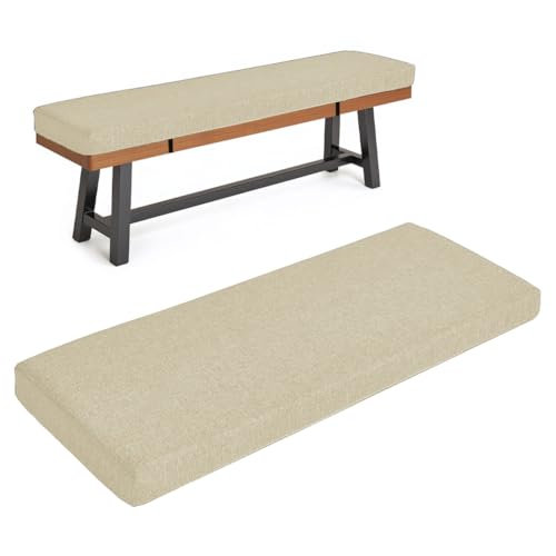 Coussin Banquette Exterieur/Interieur 120x50/100x40/90x50, Coussin pour Banc de Jardin Antidérapant 1/2/3 Places, Amovible et Lavable, pour Balancelle, Chaise de Salle à Manger(Beige,90x55cm/35x22in)