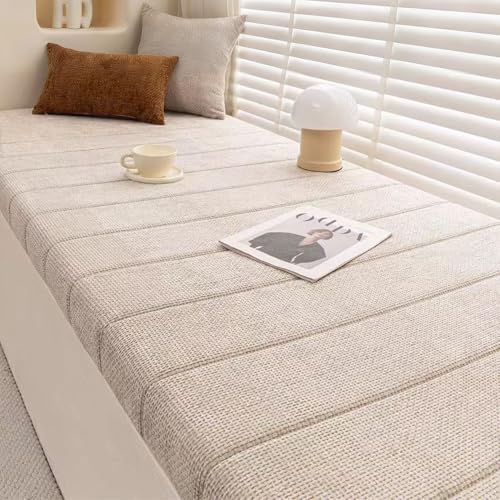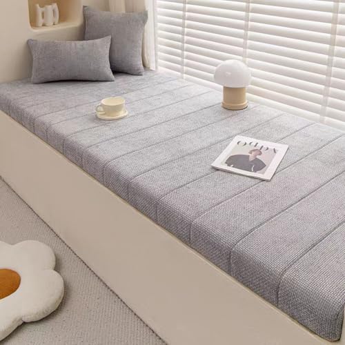 WLXFF Coussin De Banc Interieur avec Fermeture éClair, Lin Matelas pour Banquette Exterieur, Confortable Coussins pour Terrasse,Balcon,Banquette,Beige Gray,90x50x5cm