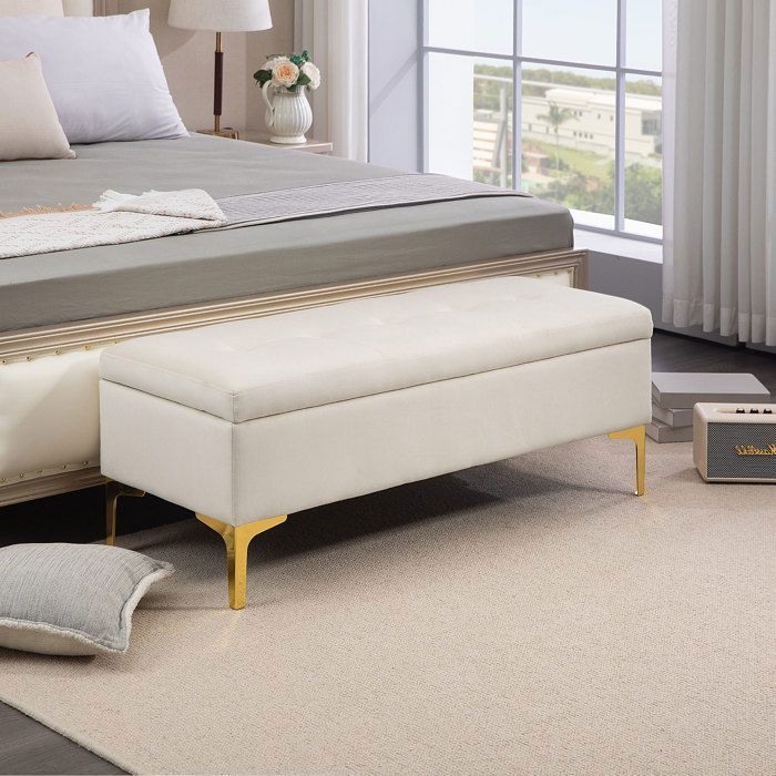 Macabane Banc de lit en velours orange pieds métal doré