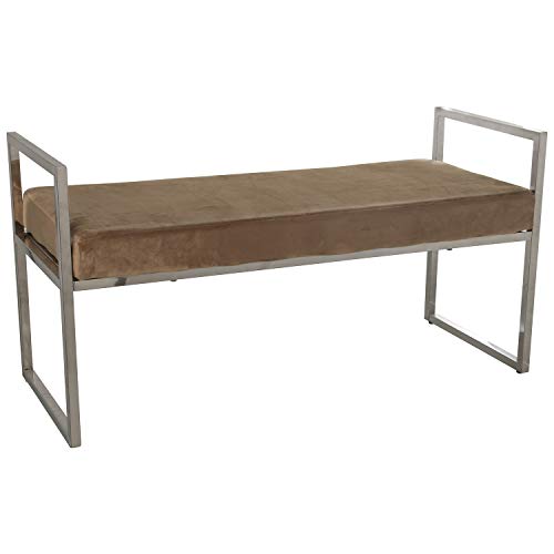 DRW Banquette en Velours et Acier Inoxydable Marron 103 x 41 x 54 cm Assise 40 cm