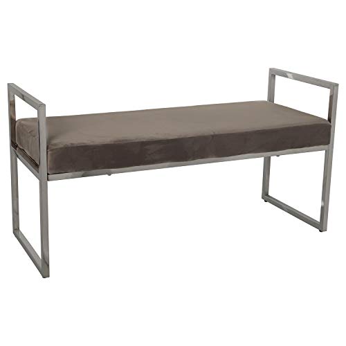 DRW Banquette en Velours en Acier Inoxydable Brillant et Gris 103 x 41 x 54 cm, Assise 40 cm