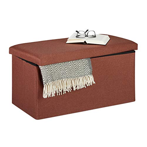 relaxdays Banquette, Espace de Rangement, Effet Lin rembourré, entrée, Chambre à Coucher, coffreHlP 38x76,5x38,5 cm,Brun
